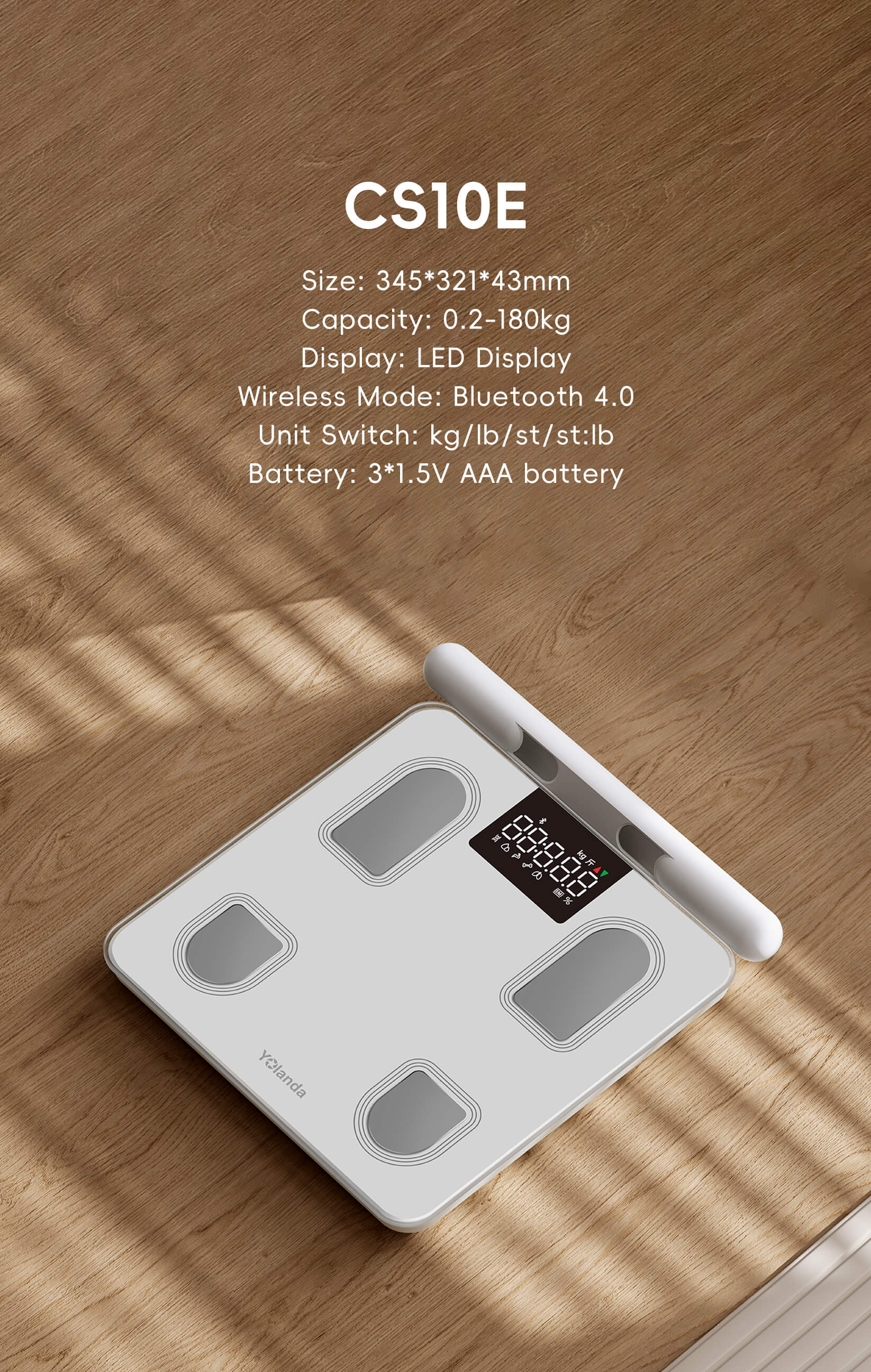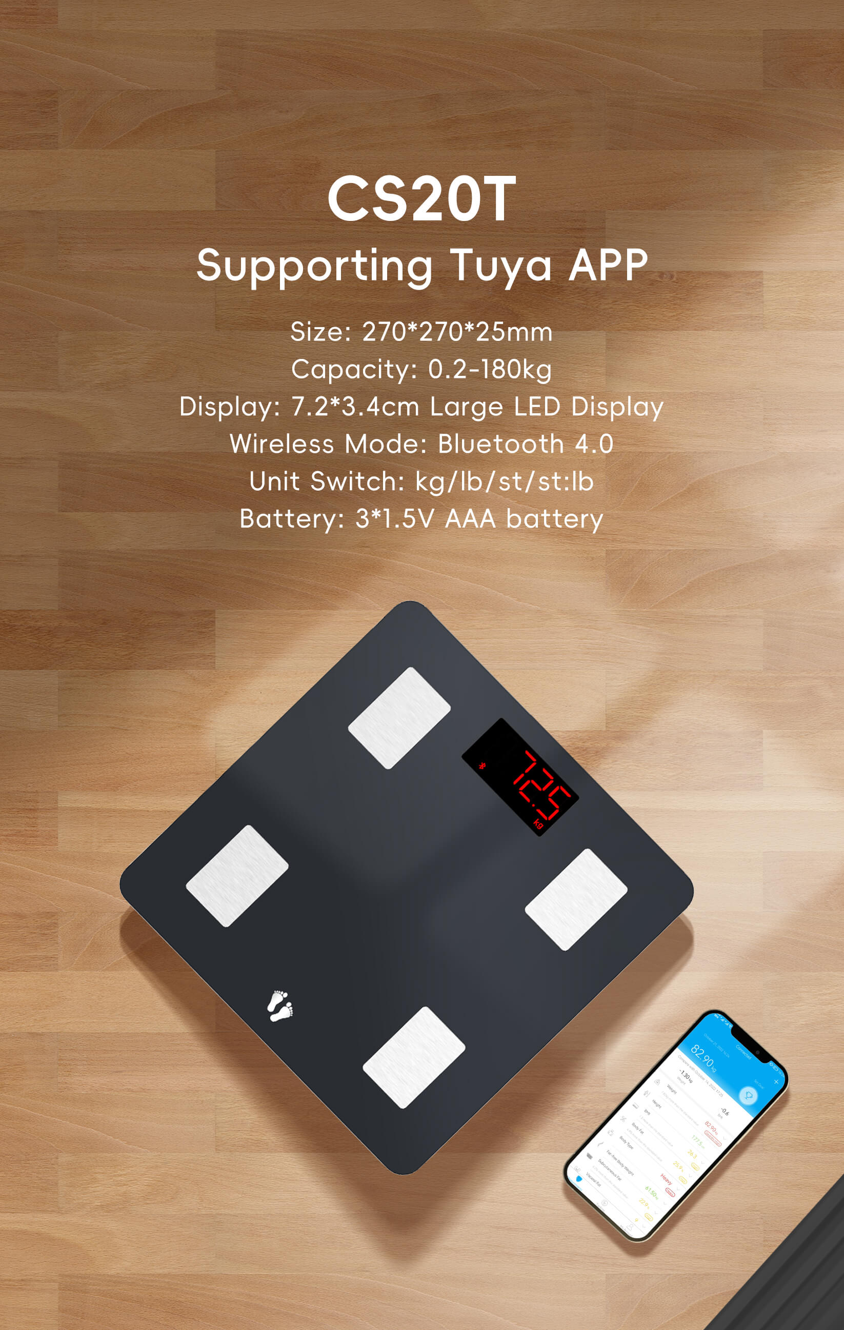 Capacity: 0.2-150KG Wireless Mode:Bluetooth Conductor:Four Electrodes (Metal or ITO)